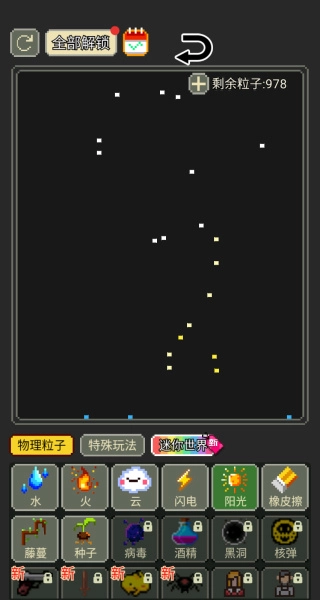 游戏里有多种物理粒子可供选择,你能随意添加这些粒子,观察它们之间的相互作用,像水与火相遇时的反应就很有趣。