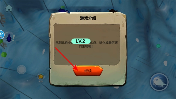 点击“继续”按钮,在进入游戏介绍后的操作环节后,继续推动虫子进化冒险的进程。