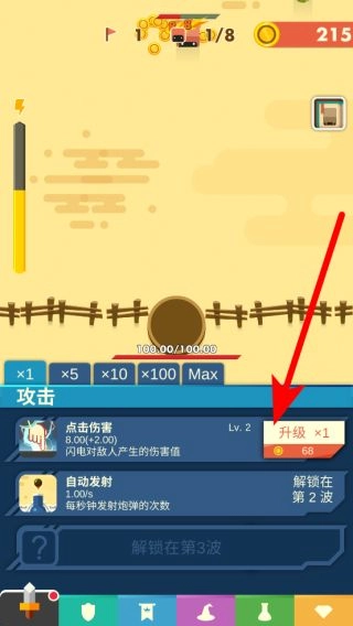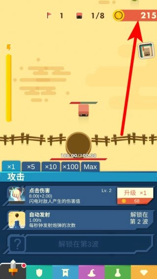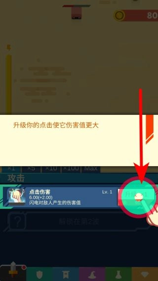 随着波数的推进,还会解锁更多与攻击相关的能力,比如点击伤害升级等。合理运用这些能力并利用金币进行升级,就能更有效地守护阵地。