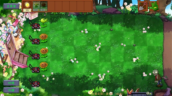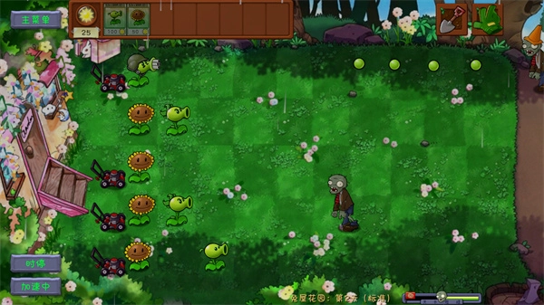 你还可以利用右上角的铲子来清除多余的植物,只要把所有僵尸都消灭就能顺利通关。