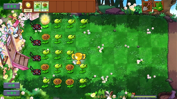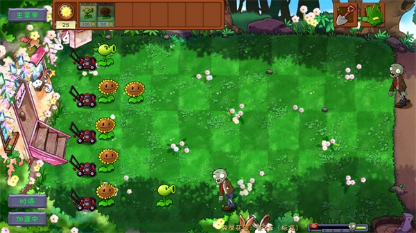 可以把向日葵种在后排,这样就能持续产出阳光;豌豆射手则种在前排,以便不断发起攻击。