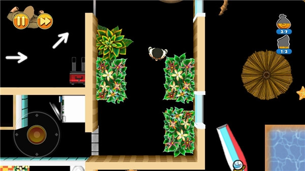 关卡内有超强的保安系统,用尽心思躲藏起来。