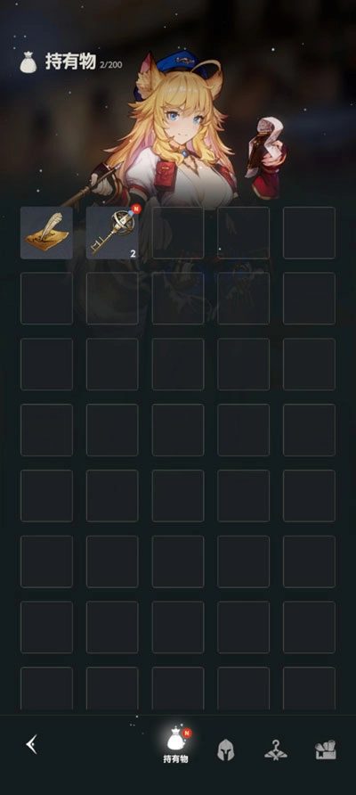 6、点击右下角的背包按钮,就能查看自己拥有的道具和武器装备了。