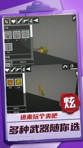 3、游戏提供多种武器供玩家挑选,玩家不仅可以塑造各具特色的角色,还能自由设计各类场景,开启专属于你的趣味模拟挑战之旅。
