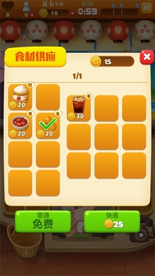 5、当食材耗尽时,点击右下方的电话图标,即可启动食材进货流程;