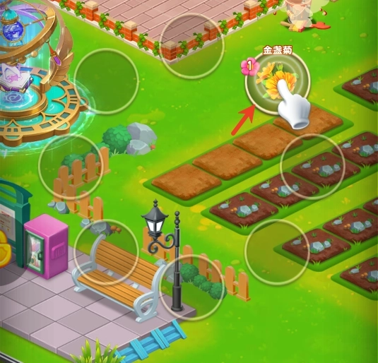 1、按照新手引导的提示,点击选择金盏菊进行种植,后续还有其他各类种子可供自由挑选。