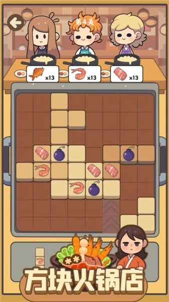 《方块火锅店》是一款将消除方块与火锅店经营相结合的游戏,既充满休闲趣味,又蕴含策略深度。游戏以消除玩法为核心机制,玩家需通过连接肥牛卷、土豆片、虾滑等相同食材方块完成消除,以此获取经营所需的各类资源。在游戏过程中,玩家要根据顾客点单的食材需求摆放方块,通过消除整行或整列的方块来满足顾客,成功达成顾客需求后即可获得奖励,用于升级店铺设施、拓展经营规模,最终将这家小店经营得愈发红火热闹。