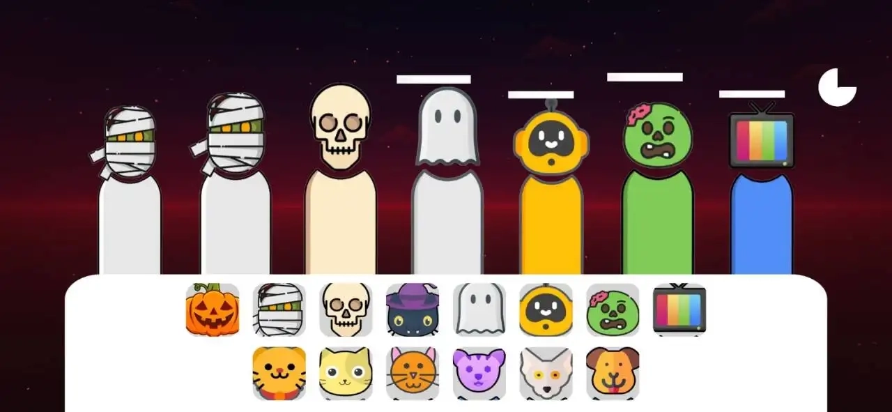 2、拖动元素为灰色角色进行装扮,有动物元素和万圣节元素。