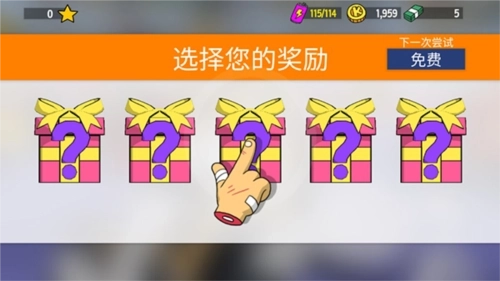 获得比赛胜利之后,可以抽取礼包,在五个礼包里选择一个。